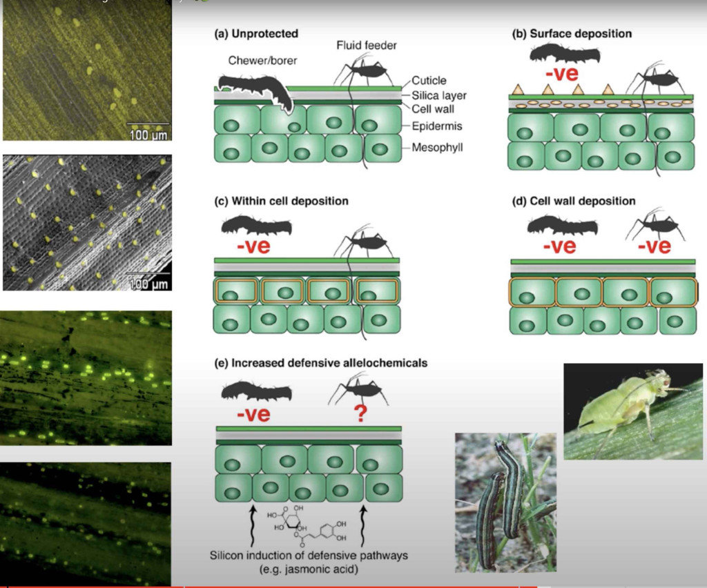 Kutatások szerint a növények sejtfalának erőssége növelhető, ha emelkedik a szilícium tartalmuk. Ezzel együtt azt is tapasztalták, hogy nő az ellenállóképességük a kártevők támadásai ellen, mert a magasabb szilícium tartalmú növényeket elkerülik a rovarok, és inkább oda mennek, ahol puhább a levél és a szár.
