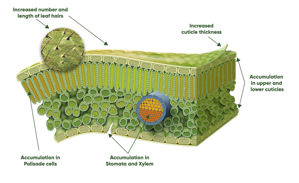 Emellett a szilíciumkristályok képesek visszaverni a fény egy részét, ezzel a nyári hőségben optimalizálják a növények légcserenyílásának működését, ami 1-2 fokkal hűtheti a növényt.
